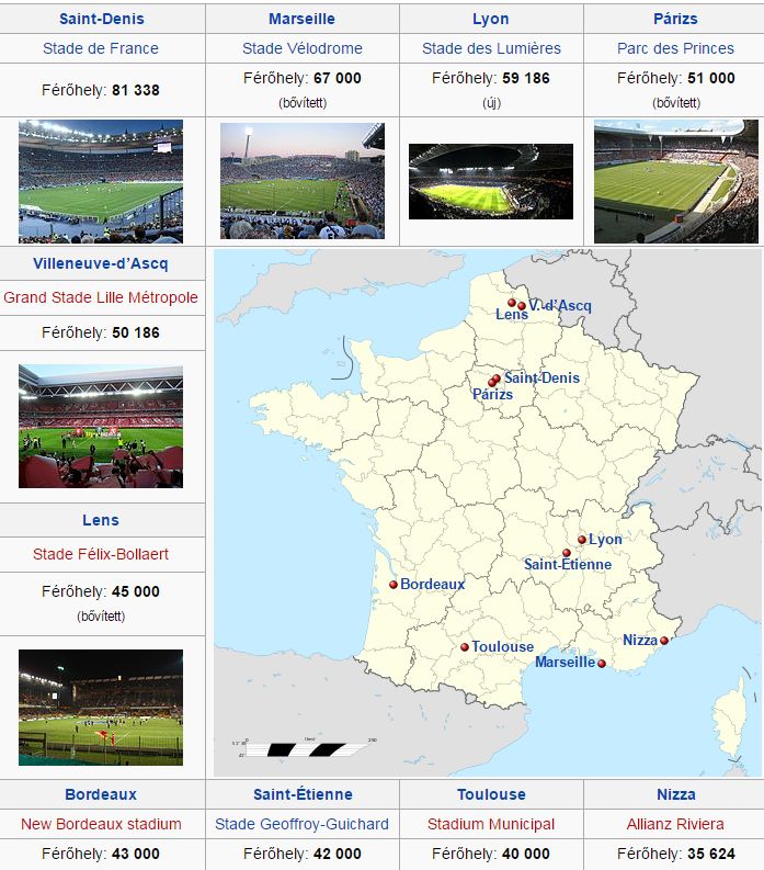 A 2016-os Foci (Labdarúgó) EB miatt sok sportszerető lázban ég, őket megnyugtathatjuk, hogy június előszezon Franciaországban, és 7-9 euró/fő/éj áron lehet sátorhelyet találni. Pl. egy parcella egy autó és maximum három kis sátor részére. Tiszta közös fürdő és étkező részek, több helyen az alapárban egy elektromos csatlakozás is benne van (~5 amperes). Stadionok és városok, amik mérkőzés helyszínek, így a közelükben lesz sok kempingező, a hotelek nagy része már megtelt. Saint-Denis – Stade de France (itt lesz a döntő), Marseille – Stade Vélodrome, Lyon – Stade des Lumières, Párizs – Parc des Princes, Bordeaux – New Bordeaux stadium, Saint-Étienne – Stade Geoffroy-Guichard, Toulouse – Stadium Municipal, Nizza – Allianz Riviera.